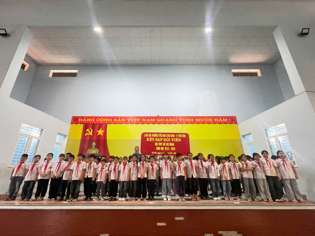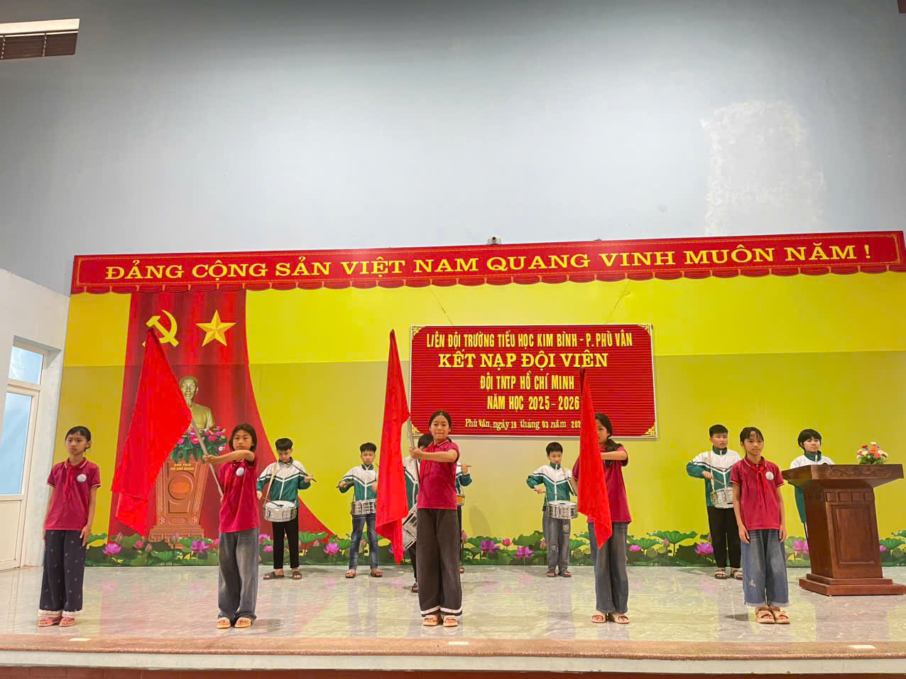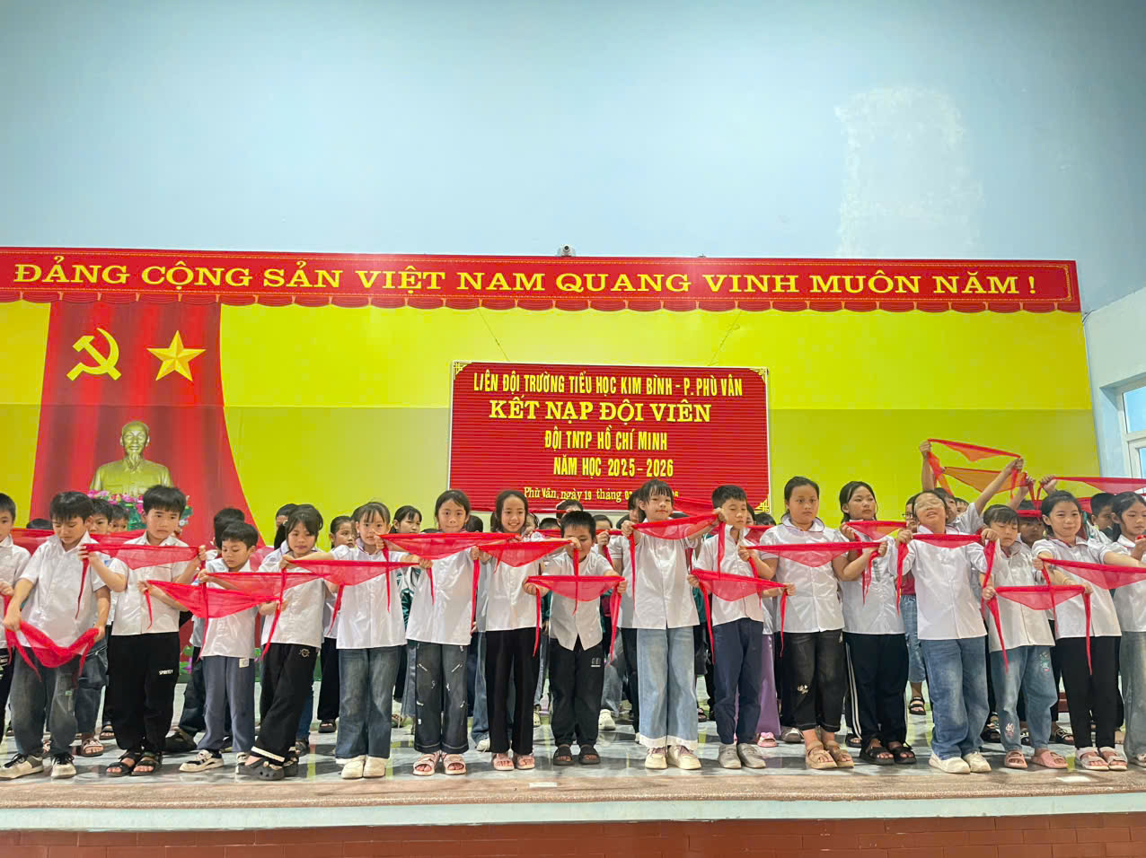 Trong không khí thi đua sôi nổi của thiếu nhi cả nước hướng tới những ngày lễ lớn, chiều ngày 19/3/2026 Liên đội Trường Tiểu học Kim Bình đã long trọng tổ chức Lễ kết nạp đội viên mới cho các em học sinh tiêu biểu, có nhiều nỗ lực trong học tập và rèn luyện.