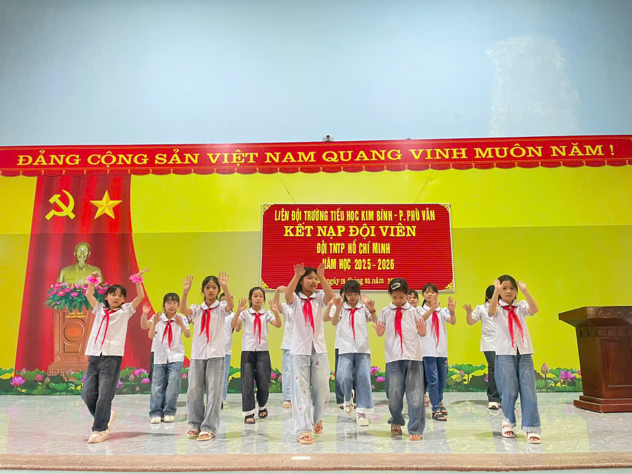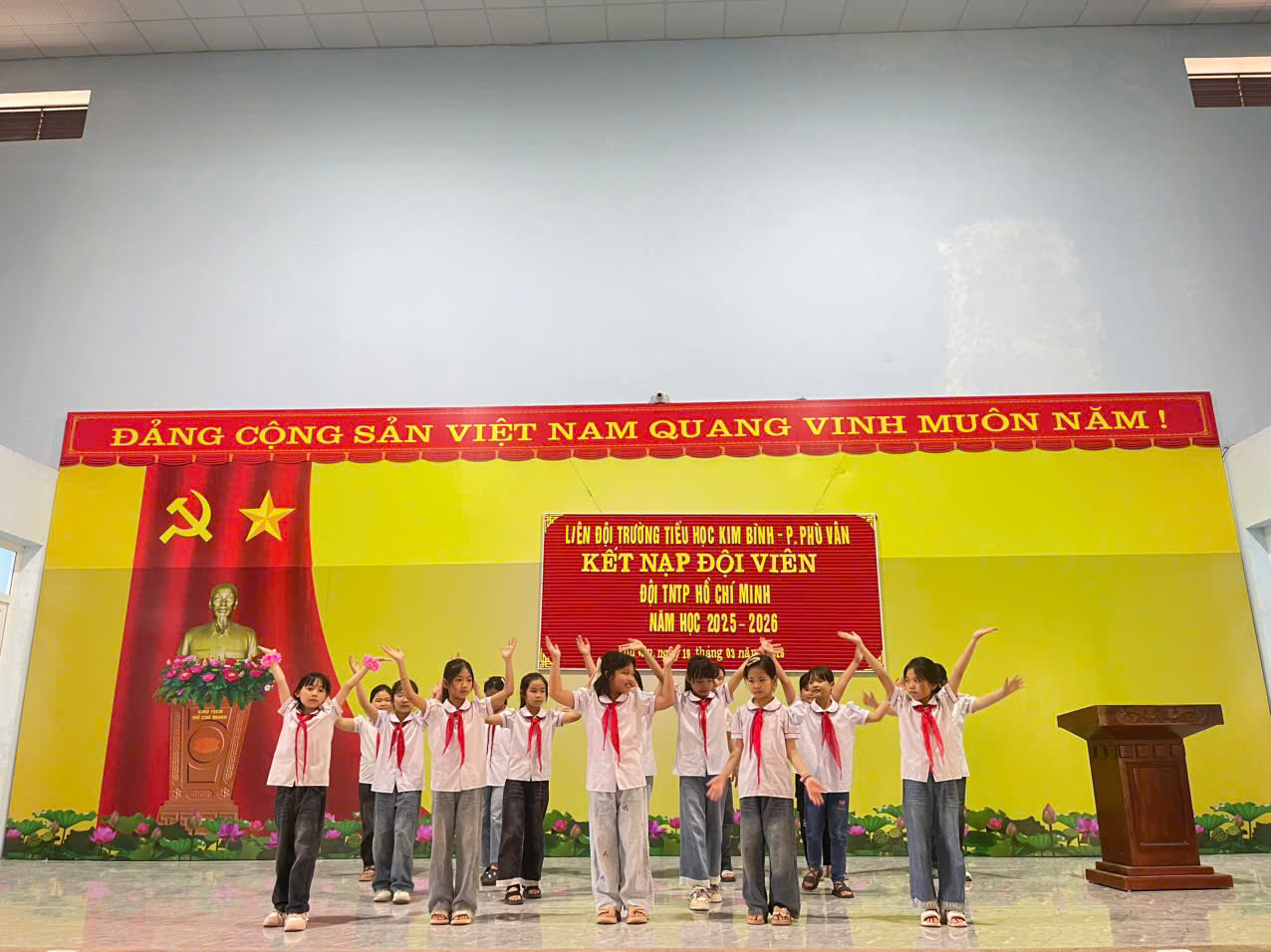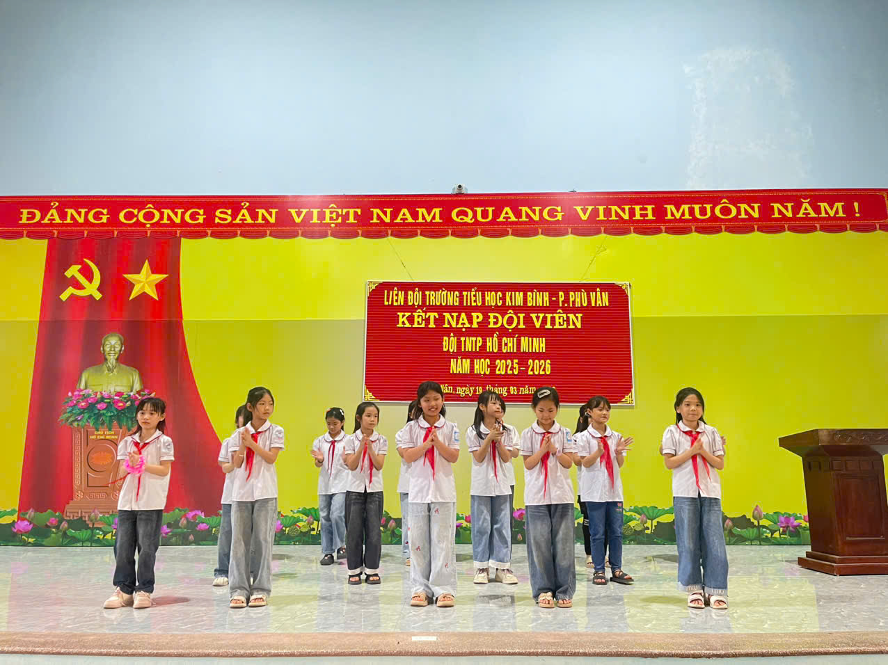 Trong không khí thi đua sôi nổi của thiếu nhi cả nước hướng tới những ngày lễ lớn, chiều ngày 19/3/2026 Liên đội Trường Tiểu học Kim Bình đã long trọng tổ chức Lễ kết nạp đội viên mới cho các em học sinh tiêu biểu, có nhiều nỗ lực trong học tập và rèn luyện.